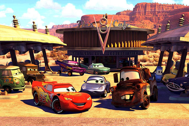 Durante a viagem, ele e Mack (o camião transportador) são assolados por uns «carrões» marginais (um fantástico gag à saga «The Fast and The Furious») e o protagonista acorda no meio da estrada, no meio de nenhures. Em busca do caminho, vai dar a uma pequena povoação perdida na mítica Route 66, chamada Radiator Springs.