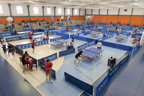 Possui um piso sintético e é composto por uma área de 1218,9 m, sendo as medidas da nave de 44,416 x 27,443 m, um parque de estacionamento, bancada para assistência e instalações sanitárias.