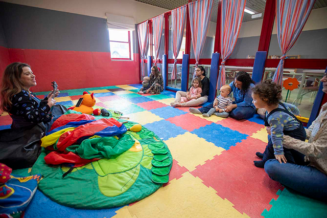Sessões de literacia musical para bebés e pais.