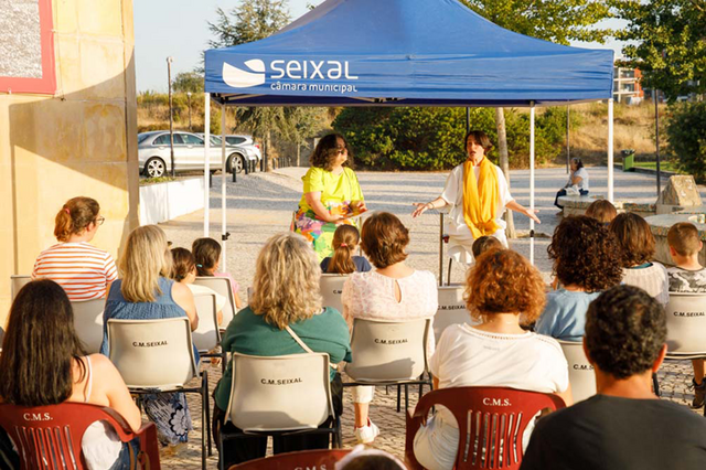 Neste fim de tarde especial, no exterior da Biblioteca Municipal do Seixal, a contadora da casa, Susana Filipe, acolhe a contadora convidada, Ana Sofia Paiva, para a mudança de mais um ciclo.