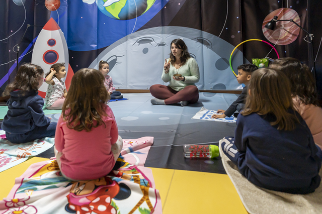 Esta oficina das emoções combina elementos do ioga, dança e artes plásticas, partindo da história do livro «Eu sou Yoga», com o objetivo de trabalhar a emoção calma.